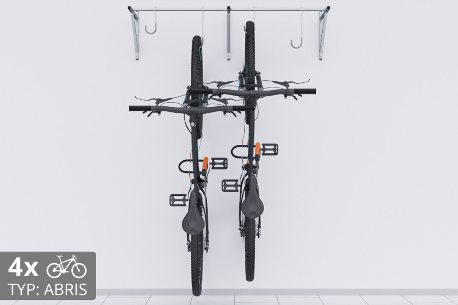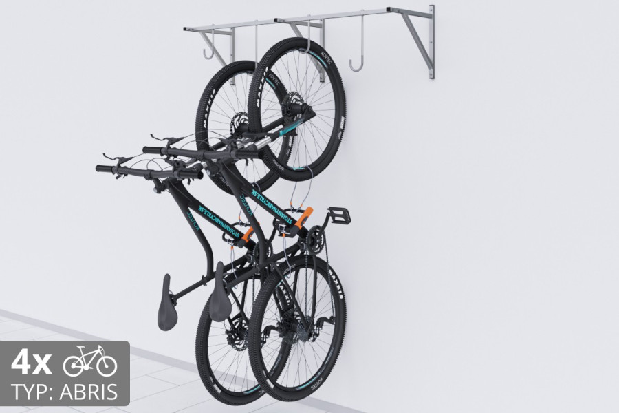 Už vás nebaví zakopávať o bicykle v garáži, pivnici alebo predsieni? Držiak na bicykle ABRIS je ideálnym a elegantným riešením, ako udržať poriadok a pritom uskladniť štyri bicykle bezpečne a s minimálnymi nárokmi na priestor. Vďaka vertikálnemu zaveseniu na stenu získate späť cenné metre štvorcové.