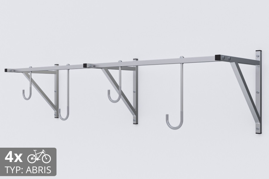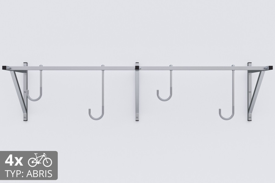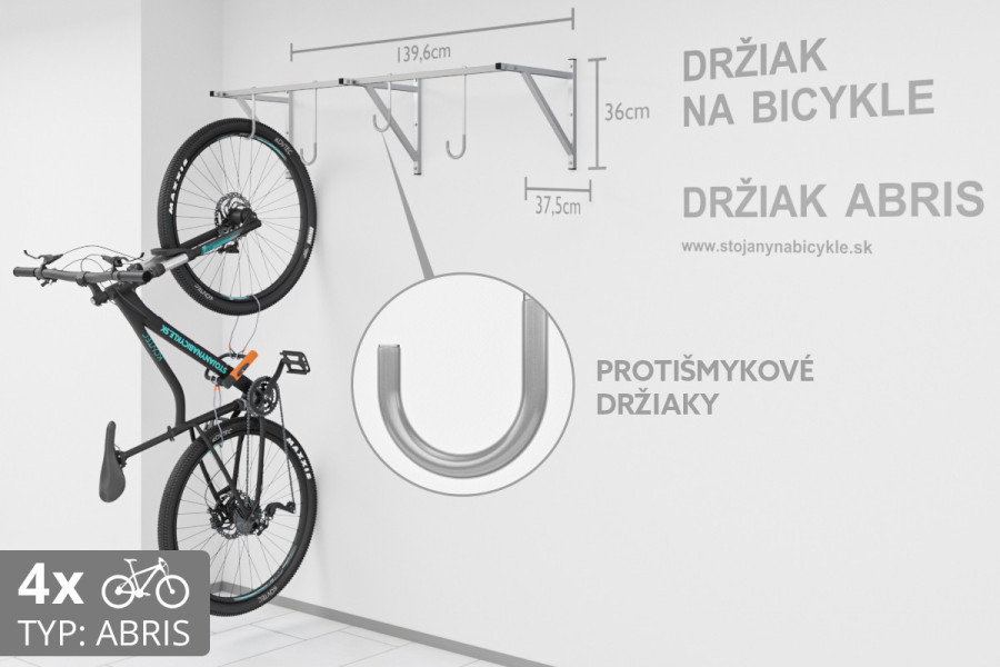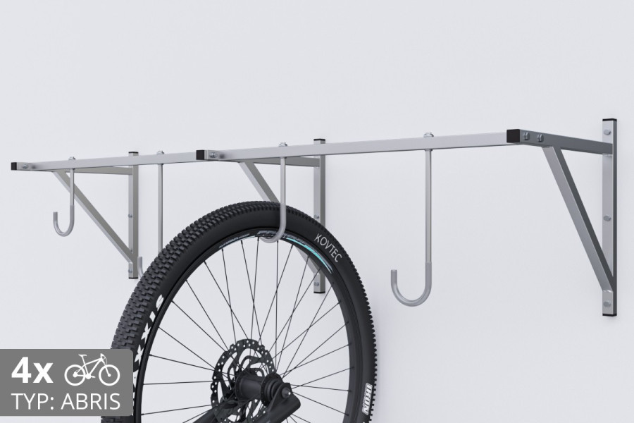 Držiak na bicykel na stenu, 4 miestny ABRIS strieborný