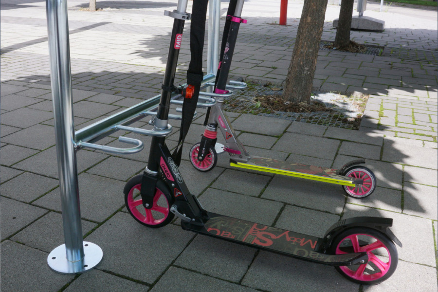 Stojan pre kolobežky 10 miestny jednostranný, nerezový